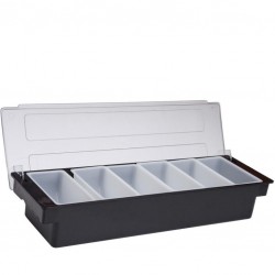 4 kivehető tartályt tartalmaz, ideális gyümölcsök, feltétek, fűszerek és koktéldíszek számára.